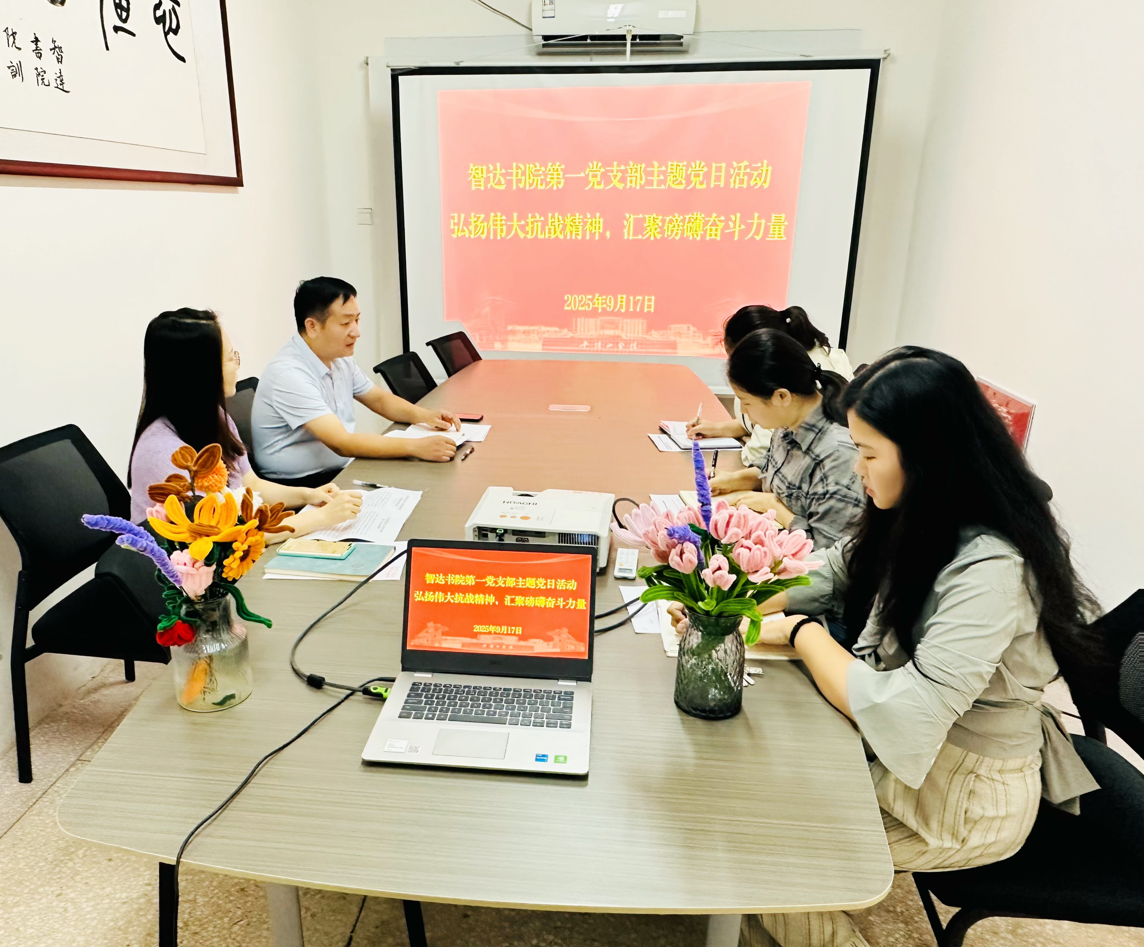 2025年9月17日上午,william威廉亚洲官方第一党支部在william威廉亚洲官方15111会议室开展“弘扬伟大抗战精神,汇聚磅礴奋斗力量”主题党日活动,书院全体党员参加了此次活动。