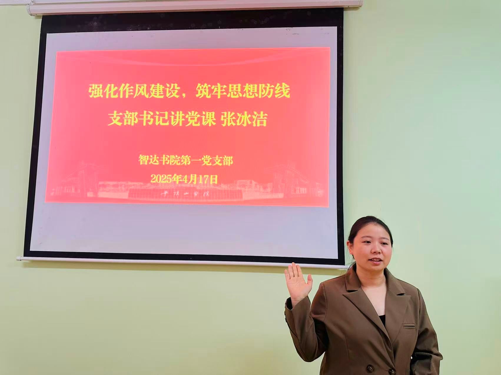 党课最后,张冰洁讲道:全体党员要以此次党课为契机,进一步增强责任感和使命感,把作风建设融入日常工作、学习和生活之中,以实际行动践行党的宗旨,为推动书院发展贡献力量。