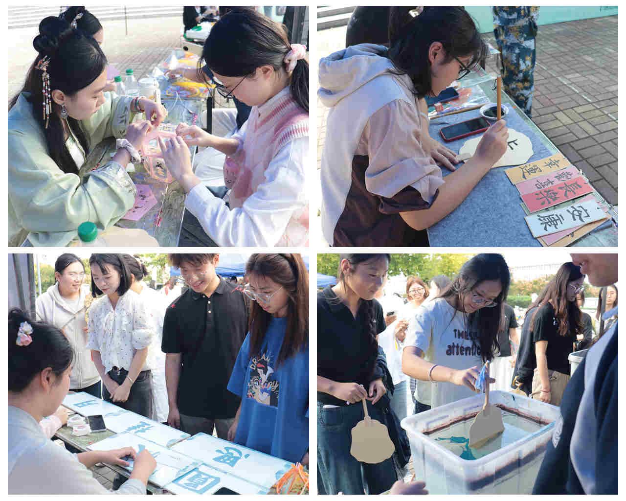 “奇妙游”现场气氛热烈,各项活动有序开展。在“谜启智达,灯谜竞猜”环节,学子们或驻足凝思,或三两讨论,在欢声笑语中揭开一个个趣味谜底;“秋夕吟怀,诗词对答”区成为露天雅集,同学们围绕“月”“秋”主题吟诵经典诗句,从“小时不识月”的童真到“千里共婵娟”的旷达,在古诗词吟诵中与古代先贤心灵相遇;“扇绘雅韵,漆染匠心”手工区域内,同学们以漆为墨,将五彩漆料轻点于素白扇面之上,绘制出独具中秋意蕴的漆扇作品。现场在扇面上题写美好祝福,使书法艺术与漆扇雅韵相映成趣;“灯承雅意,巧造宫灯”环节中,学子们细心拼接灯架,巧手粘贴灯面,再系上流苏、绘以图案,一盏盏精巧别致的宫灯渐次亮起。柔和的光晕透过宣纸,映照出张张笑脸,为现场增添了几分浪漫与欢喜。此外,“水中揽月,趣味乒乓”趣味游戏与“秋夕暖聚,共品月饼”环节更为活动增添了乐趣和暖意。