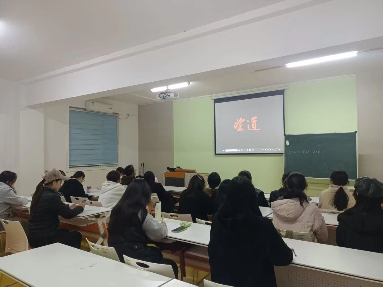 本次观影选取经典影片《望道》,该片以陈望道先生翻译《共产党宣言》首个中文全译本的历程为主线,生动刻画了一代仁人志士追寻真理、坚守信仰的精神群像。观影现场静谧庄重,同学们全神贯注沉浸于剧情之中:从陈望道先生蛰居柴房呵手译稿、误将墨汁当红糖蘸粽的赤诚,到他奔走讲堂传播真理、守护革命火种的坚毅,再到无数革命者前赴后继传承信仰的壮烈,一幕幕震撼场景让学子们深切体悟到“望道”二字承载的精神重量。